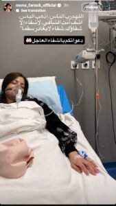 كشفت الفنانة منى فاروق عن تعرضها لأزمة صحية مفاجئة نُقلت على إثرها إلى المستشفى ، و طالبت متابعيها بالدعاء لها ونشرت عبر خاصية الاستوري صورة لها وهى على سرير المستشفى تتلقى الرعاية الطبية وعلقت عليها ” دعواتكم بالشفاء العاجل”.